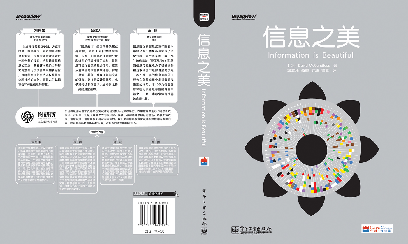 David McCandless在2010Ted大会上第一次展示了耗时一年的信息视觉化“实验作品集”-《Information is Beautiful》。《信息之美》中文版于2012年出版,受到大量关注和欢迎。作者花了一年的时间,收集了200多个新的图像信息设计案例,并探索出一系列视觉主题。我们生活在一个信息爆炸的时代,每一分钟、每一秒钟都会从电视、报纸或互联网获得信息,我们甚至都来不及思索,就已经被这些信息淹没。所以,我们需要一种新的方法,来发现信息的美和乐趣。